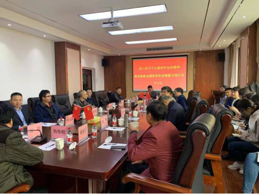 为深入学习贯彻党的十九届四中全会精神,激发师生们的研究热情,世俱杯官方网站于11月6日上午在三楼会议室召开了一场关于“深入学习十九届四中全会精神,推进国家治理体系和治理能力现代化”的研讨会。中国社会科学院政治学研究所副所长杨海蛟、南京师范大学公共管理学院院长赵晖、中国红色资源开发与教育研究中心主任李康平等来自全国各地高校的18名专家、学者应邀参加了此次研讨会。世俱杯官方网站教师代表、硕士、博士生代表也到场旁听。本次研讨会由陈哲副院长主持。