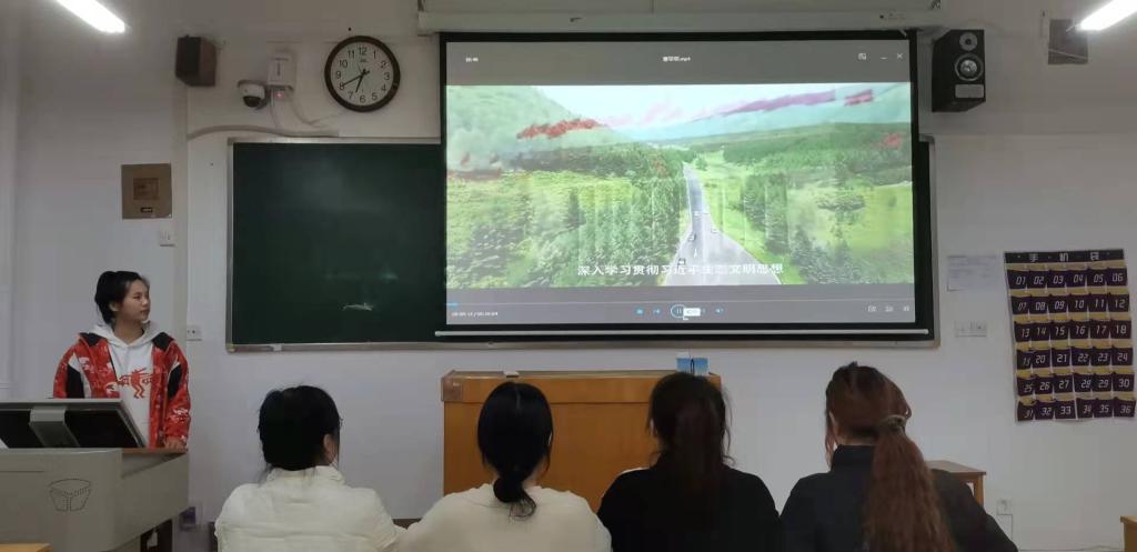 王迎男以《以塞罕坝生态发展历程解读十九届六中全会生态文明建设成就》为题,讲述塞罕坝“荒原变绿洲”的人间奇迹,她结合习近平生态文明思想,呼吁在场同学要牢固树立绿水青山就是金山银山理念;李文艳以红船精神的为题,全面展示百年大党披荆斩棘、一往无前的红船征程;杜晓洋讲述各行各业的共产党员们不畏疫情,逆行而上,用初心践行使命,用实际行动践行入党誓词。宣讲结束后,在场同学们纷纷表示塞罕坝精神、红船精神与抗疫精神均从不同方面展示了百年大党所坚守的初心使命,应当深入学习,从精神中汲取力量,坚定理想信念。