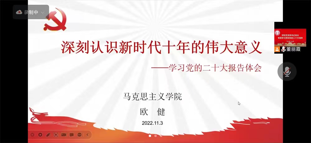 为全面深入学习贯彻党的二十大精神,切实把党的二十大精神更好贯彻落实到推动学院各项事业高质量发展的具体实践中。11月3日下午,世俱杯官方网站以线上线下相结合的方式召开学院全体党支部书记会议,专题学习贯彻党的二十大精神。学院党委书记彭绪琴、党委副书记吴涛、党委委员欧健、副院长关海宽以及全体党支部书记参加会议,会议由彭绪琴主持。