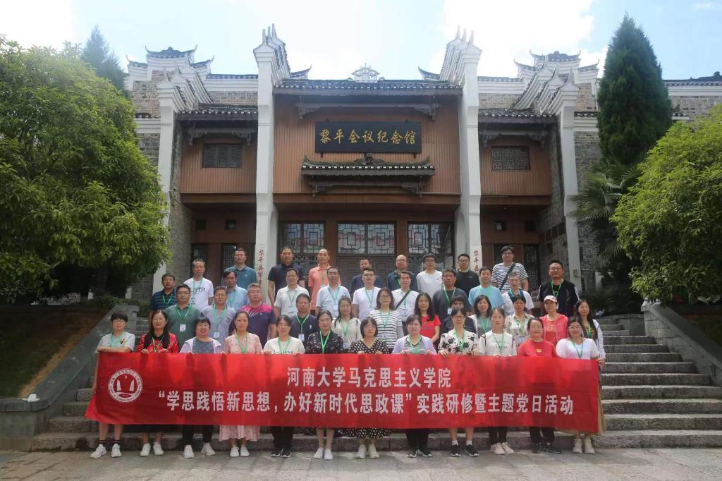 为深入学习贯彻习近平新时代中国特色社会主义思想,对标《关于加强新时代世俱杯官方网站建设的意见》《关于深化新时代学校思想政治理论课改革创新的若干意见》等文件要求,切实提升思政课教师的教学和科研能力,充分发挥思政课立德树人和培根铸魂的强大育人功能,2023年8月4日至10日,世俱杯官方网站赴教育部全国高校思想政治理论课教师社会实践研修基地(贵州师范大学)开展“学思践悟新思想,办好新时代思政课”实践研修暨主题党日活动。学院党委书记彭绪琴,执行院长任东景,党委副书记郑珊珊,副院长孟骞、关海宽以及四十余名思政课教师参加此次实践研修。