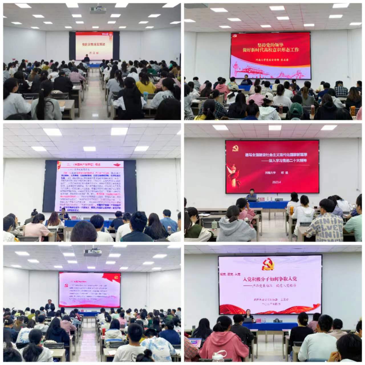 在集中授课环节,院关工委副主任冯廼郁以《党的民族宗教政策解读》为题,为学员们系统梳理党的民族宗教政策,要求全体学员要坚持好党的宗教工作基本方针;张枫林以《了解中原红色文化,坚定理想信念》为题,向学员们讲述习近平总书记对红色文化的论述、中原红色文化的概念、内容及价值,勉励学员们要积极传承中原红色文化,赓续红色血脉,坚定理想信念;校党委组织部副部长王玉珍以《入党积极分子如何争取入党—严格党员标准,规范入党程序》为题向学员们详细讲述了大学生入党的重要意义以及党员发展工作程序的五个阶段25个环节,强调思想上入党的重要性,激励大家作为当代青年,应当志存高远、不忘初心使命;校党委宣传部副部长乔石豪以《坚持党的领导,做好新时代高校意识形态工作》为题,向学员们系统讲述意识形态内涵与特征,明确意识形态工作是党的一项极端重要的工作,并就加强意识形态教育以及如何做好高校意识形态工作进行了详细阐述;学院党委委员、河南省教育系统理论宣讲专家欧健以《谱写全面建设社会主义现代化国家新篇章——深入学习党的二十大精神》为题,向学员们系统讲述党的二十大主题、背景和重大意义,明确青年应当原原本本地学、实实在在地悟、不折不扣的做,深入学习贯彻党的二十大精神;彭绪琴以《学习遵守党章,争取早日入党》为题,结合党章对党员基本条件的规定,鼓励入党积极分子加强理论学习,坚定共产主义信仰;端正入党动机,树立全心全意为人民服务的价值追求;勇于实践,不断提高为人民服务的本领,积极创造条件,争取早日入党,努力做有信仰、无私心、有本事的人。