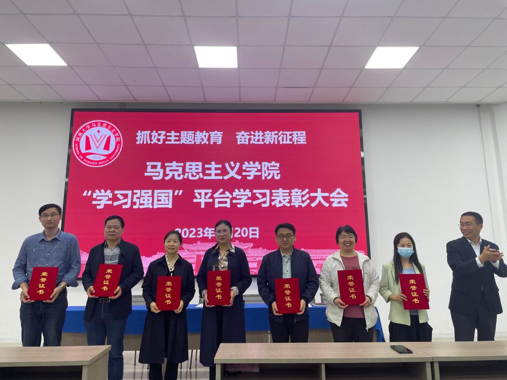 任东景在总结讲话中表示,“学习强国”学习平台是立足全党、面向全社会的科学理论学习阵地、思想文化聚合平台,是深入推进习近平新时代中国特色社会主义思想学习宣传教育的重要渠道和载体,此次表彰大会不仅是总结和表彰,更是加油鼓劲会和学习动员会,希望受表彰的党支部和先进个人继续发挥示范引领作用,营造好学院学习强国平台学习“比学赶帮超”的良好氛围,真正让学习强国平台学习成为大家思想上的“导航仪”、知识上的“加油站”、行动上的“指南针”, 成为学习型党组织建设的“助力器”。