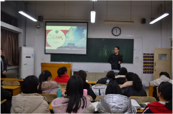 12月8日,世俱杯官方网站1903团支部于综合楼105教室组织开展了一二·九主题团日活动。活动由2019级本科生刘瑞豪主持,团支部全体团员到场参加。