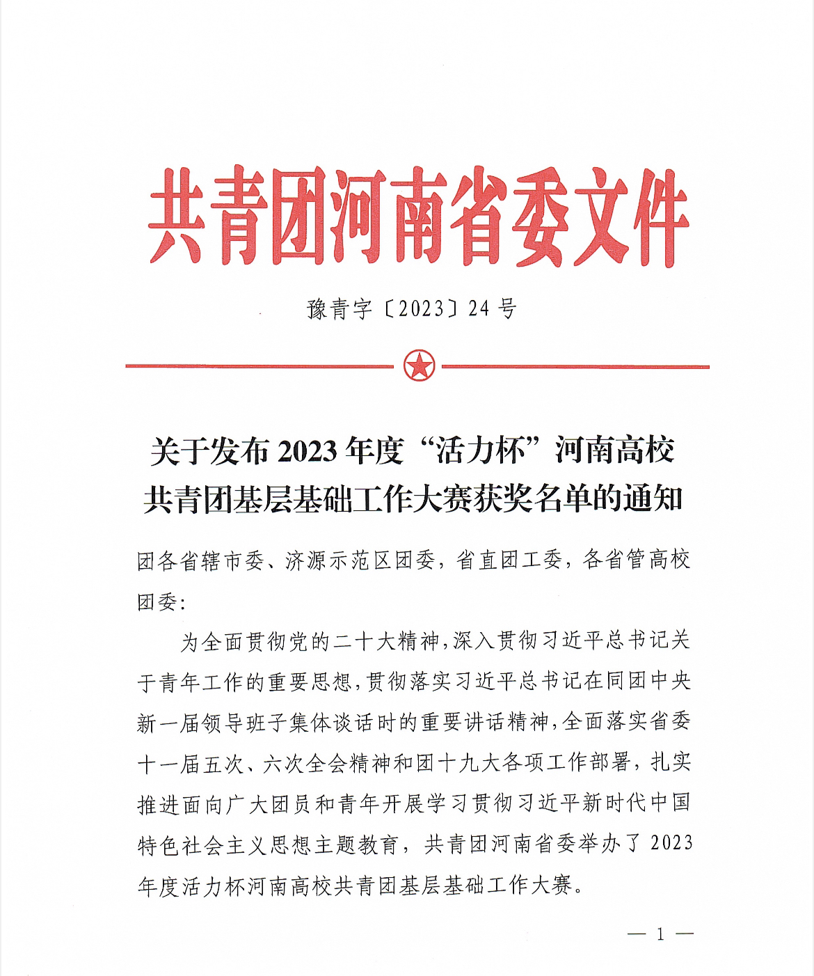 世俱杯官网在2023年度“活力杯”河南高校共青团基层基础工作大赛中荣获佳绩