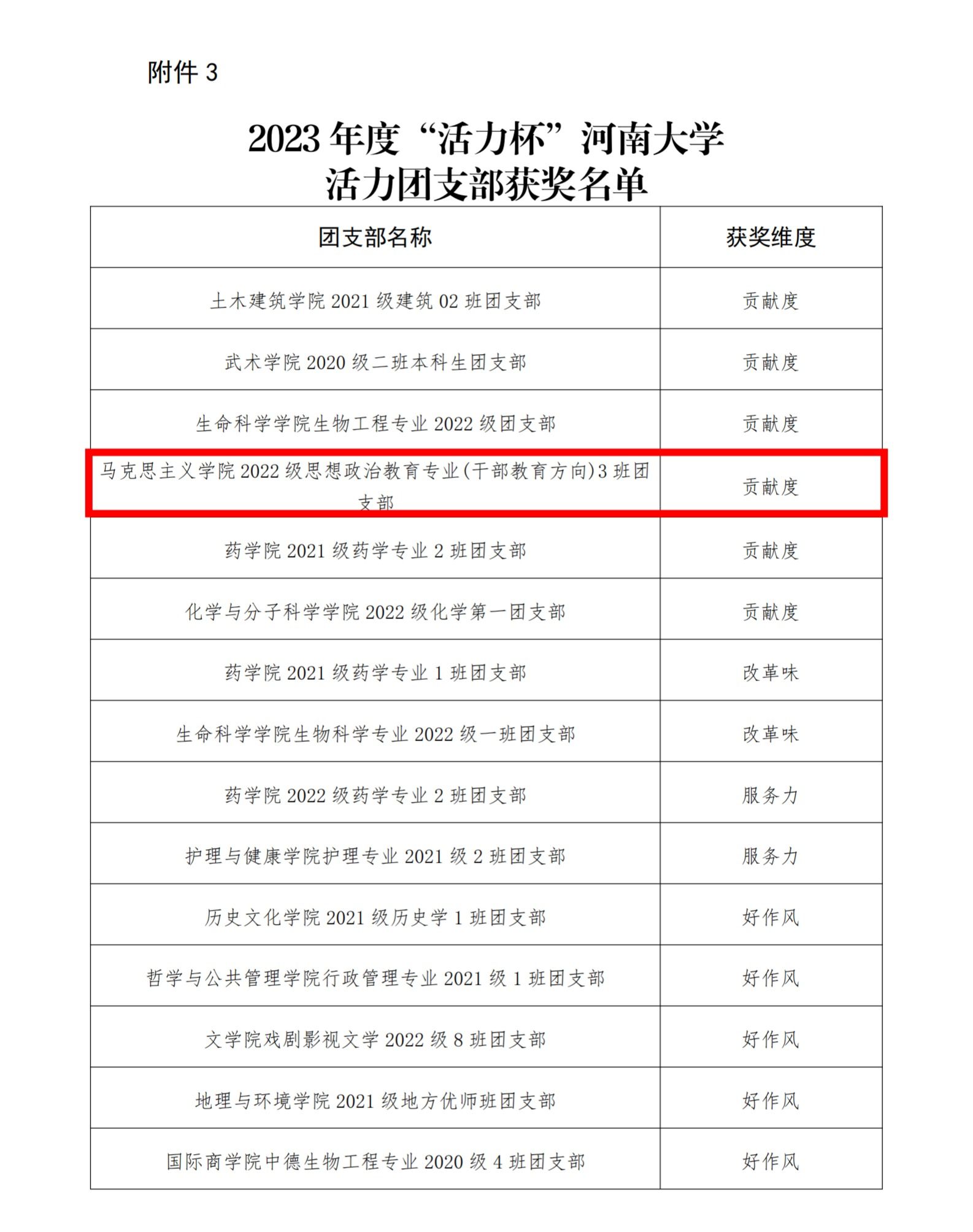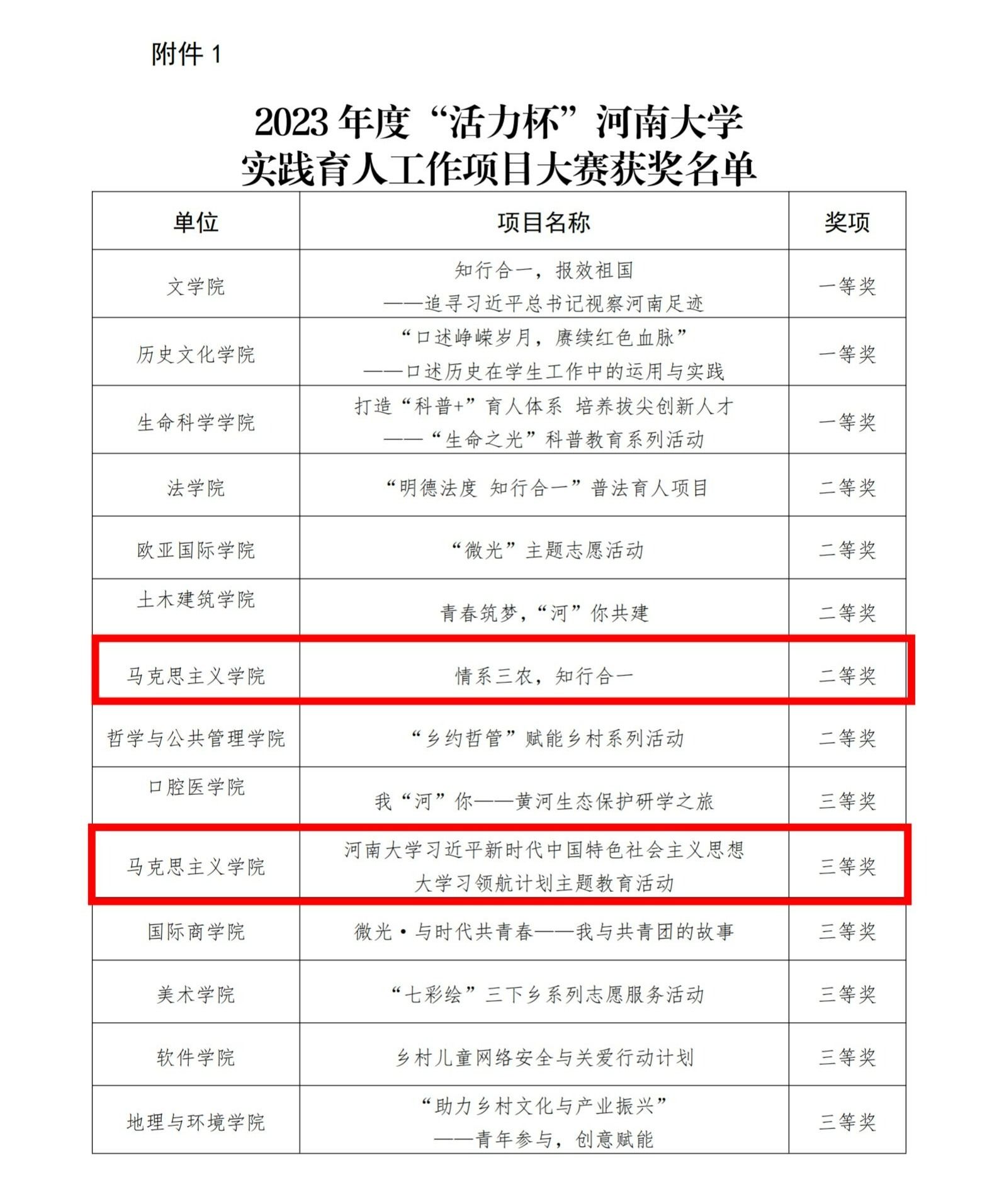 其中,世俱杯官方网站推荐的“情系三农,知行合一”项目荣获2023年度“活力杯”世俱杯官方网站实践育人项目二等奖,思想领航类项目“世俱杯官方网站习近平新时代中国特色社会主义思想大学习领航计划主题教育活动”荣获实践育人项目三等奖;挂靠学院的“世俱杯官方网站当代马克思主义研究会”和“世俱杯官方网站三农发展研究会”双双荣获“活力社团”荣誉称号;2022级思想政治教育专业(干部教育方向)3班团支部荣获“活力团支部”荣誉称号。
