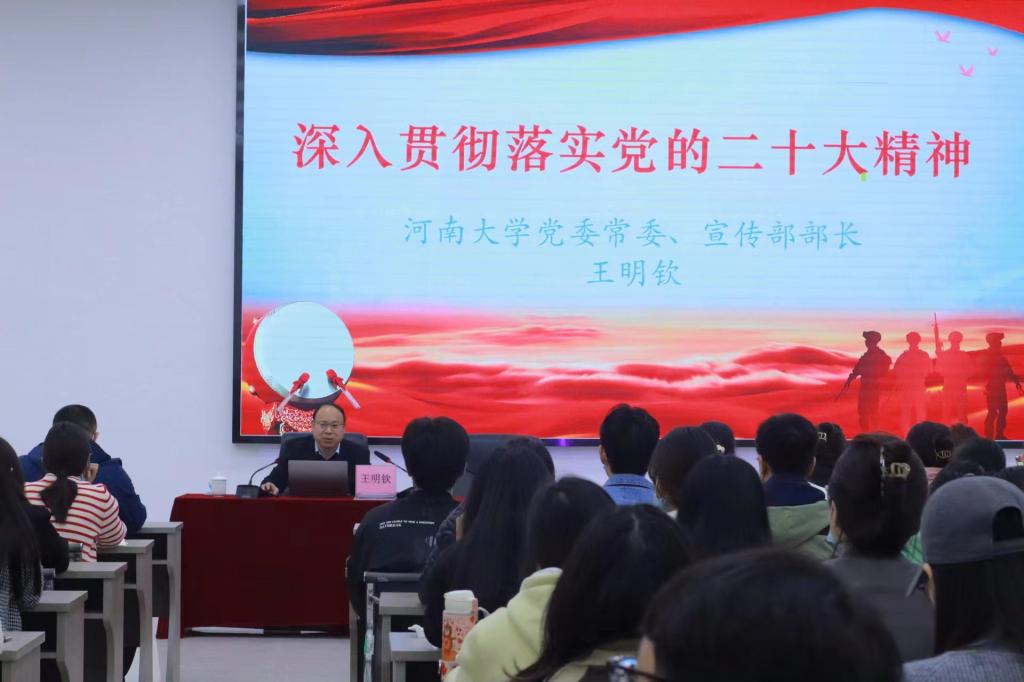 校党委常委、宣传部长王明钦教授为学院师生专题宣讲党的二十大精神