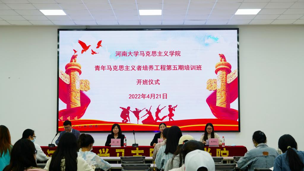 为深入学习贯彻习近平新时代中国特色社会主义思想,推动马克思主义理论在青年中广泛传播,4月21日下午,世俱杯官方网站“青年马克思主义者培养工程”第五期培训班(以下简称“青马班”)开班仪式于科技馆一楼举行。校团委书记沙莎、学院党委书记彭绪琴、副书记吴涛出席,全体第五期青马班学员参加。仪式由团委负责人范刻心主持。