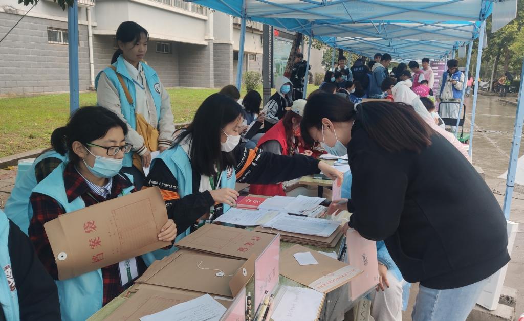 全体志愿者严格遵守疫情防控要求,积极开展迎新志愿服务活动。他们身着蓝色马甲,分布于大礼堂、仁和公寓站点处,引导新生进行体温监测,出示健康码、准考证和身份证,提交考生档案,向新生发放防疫包和校园卡等,每个环节都有条不紊地进行。此外,学院还调用了三轮车帮助新生们将行李运送至宿舍,一站式的服务为新生解决了宿舍远、行李多的难题。迎新工作开展得如火如荼,志愿者们一张张热情的笑脸,一句句亲切的问候,一项项贴心的服务,温暖着来自全国各地的莘莘学子。