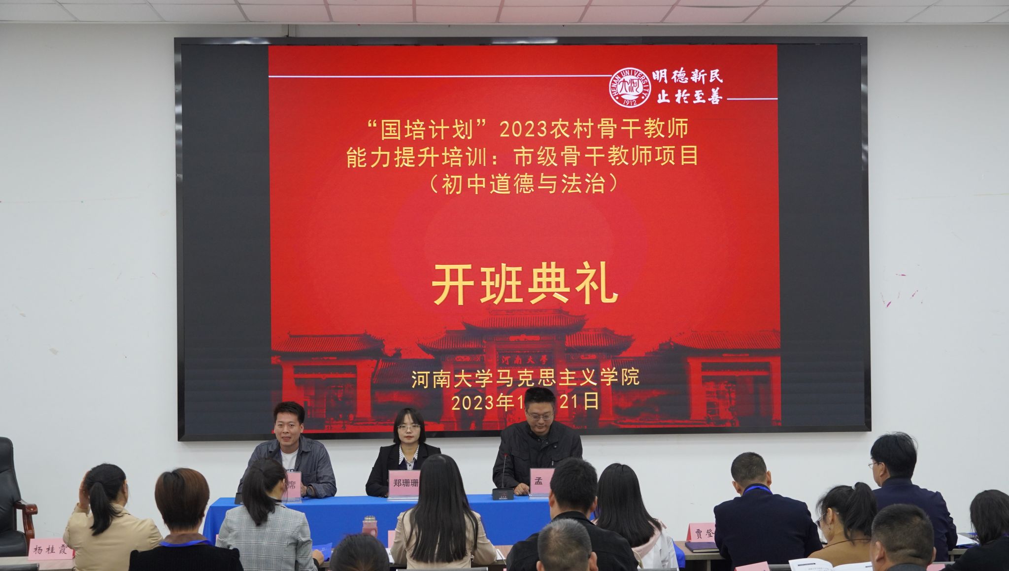 10月21日上午,河南⼤学“国培计划”(2023)农村骨干教师能力提升培训:市级骨干教师项目(初中道德与法治)开班典礼在世俱杯官方网站明伦校区科技馆⼀楼报告厅举行。世俱杯官方网站党委副书记郑珊珊、副院长孟骞参加了开班仪式,开班仪式由孟骞主持。本次培训共10天,10月20日报到,10月29日结束。
