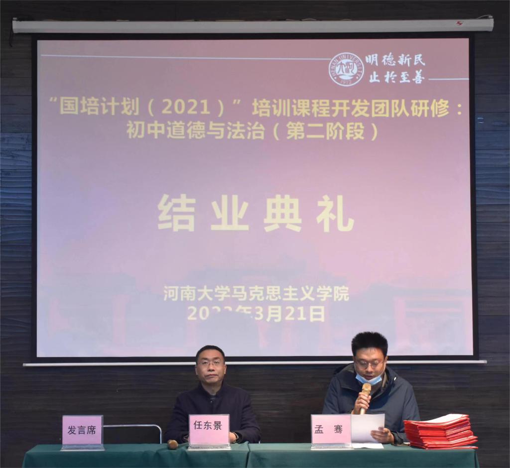 3月21日下午,世俱杯官方网站“国培计划(2021)”培训课程开发团队研修:初中道德与法治(第二阶段)培训结业典礼在开封市怡程酒店会议室举行。世俱杯官方网站执行院长任东景、副院长孟骞以及全体参训学员参加结业典礼。结业典礼由孟骞主持。