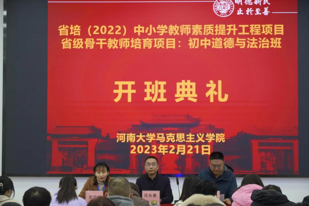 2月21日上午, 世俱杯官方网站“省培计划(2022)”义务教育师资薄弱环节暨中小学素质提升工程项目省级骨干教师培育项目(初中道德与法治)开班典礼在世俱杯官方网站明伦校区科技馆一楼报告厅举行。世俱杯官方网站执行院长任东景、世俱杯官方网站副院长孟骞参加了开班典礼,典礼由孟骞主持。