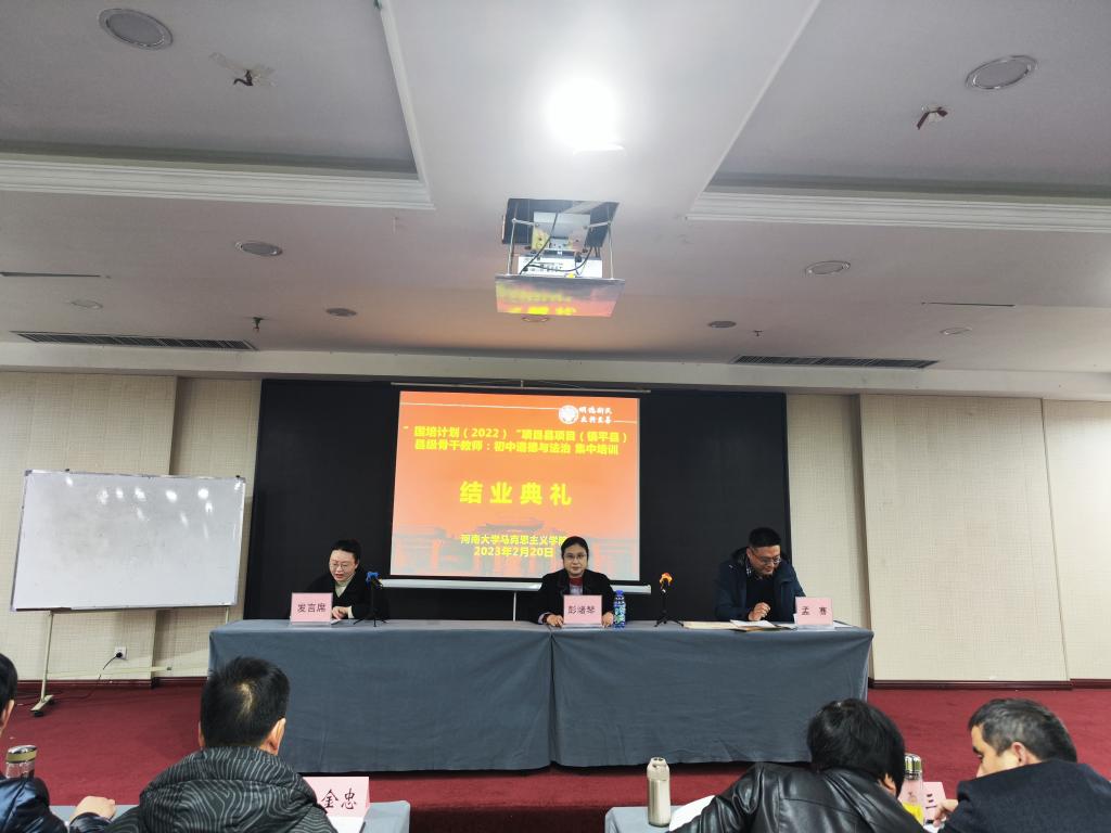 2月20日上午,世俱杯官方网站“国培计划(2022)”中西部项目—农村骨干教师能力提升(镇平县初中道德与法治)培训结业典礼在开封市银祥酒店五楼第一会议室举行。世俱杯官方网站党委书记彭绪琴、副院长孟骞参加了结业典礼,结业典礼由孟骞主持。