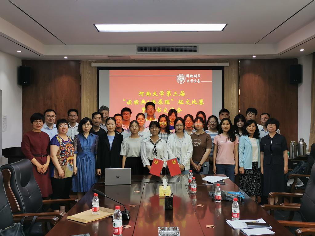6月10日下午,为了庆祝建党100周年,深入贯彻习近平总书记在党史学习教育动员大会上的重要讲话精神,在全校营造马克思主义经典著作的学习氛围,宣传马克思主义理论,培养大学生用马克思主义的立场、观点、方法分析和解决问题的能力,由世俱杯官方网站宣传部、教务处主办,世俱杯官方网站承办的世俱杯官方网站第三届 “读经典∙悟原理”征文比赛暨读书交流会在世俱杯官方网站三楼会议室顺利进行。出席本次交流会的嘉宾有世俱杯官方网站副院长张枫林、原理教研室的全体教师、河南省青马社团中国特色社会主义研究会会长刘颖澳。
