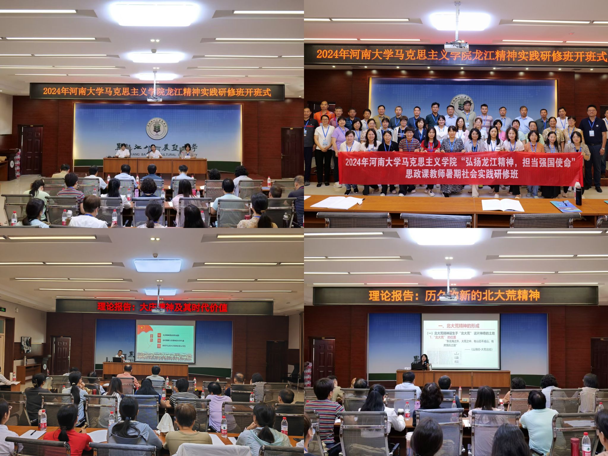 在理论教学环节,黑龙江八一农垦大学世俱杯官方网站教授焦丽以《历久弥新的北大荒精神》为题作专题讲座。她从北大荒精神的形成、北大荒精神的内涵以及北大荒精神的时代价值等三个方面诠释了“自力更生、艰苦创业、勇于开拓、甘于奉献”的北大荒精神,让在场的思政课教师感悟到一代代垦荒人筑起的北大荒精神丰碑。东北石油大学大庆精神教育研究中心主任李万鹰作了题为《大庆精神及其时代价值》的专题讲座,让在场的思政课教师感悟到以王进喜为代表的一代代石油人不畏艰难、勇往直前的宝贵精神,深化了对“爱国、创业、求实、奉献”的大庆精神的理解。