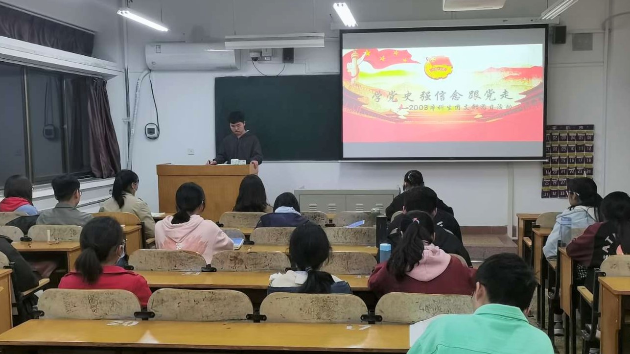 以庆祝建党100周年为契机,为贯彻落实习近平总书记在党史学习教育动员大会上关于抓好青少年党史学习教育的重要讲话精神,响应校团委和院团委的号召,引导广大团员青年了解党的光辉历史和伟大成就,3月23晚,世俱杯官方网站2003团支部在综合楼303教室开展了“学党史、强信念、跟党走”主题团日活动。本活动由本支部团支部书记王新月主持。