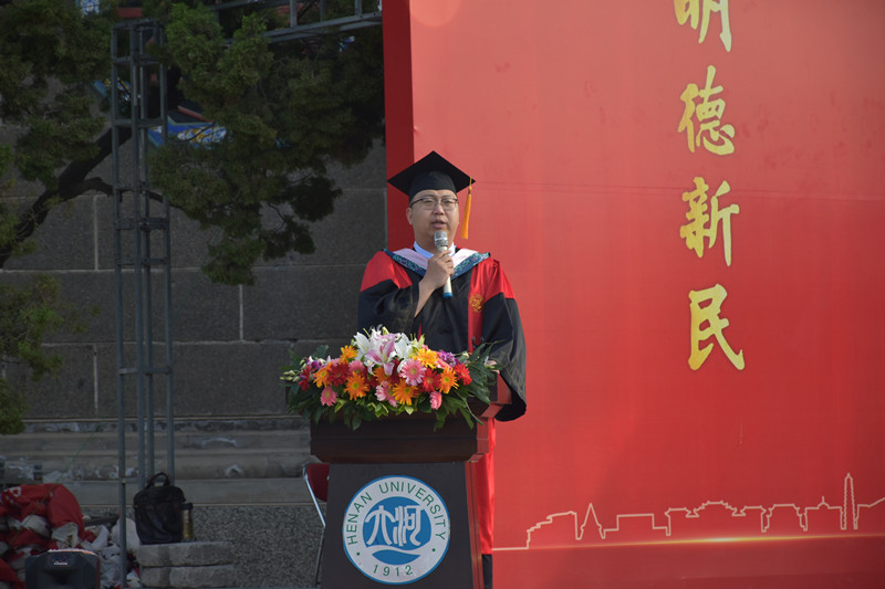 山水万程,来日方长。本科毕业生代表李可怡在发言中回顾了四年大学时光,表达了对母校和老师的感恩之情与惜别之意。她用“相识”“相知”“相别”三个关键词讲述自己与河大的故事,同时表示今后将始终以“明德新民,止于至善”的校训为指引,充分发扬“百折不挠,自强不息”的河大精神,以至善为矢志,以执着为津梁,做一个不负时代殷切嘱托的合格思政人。