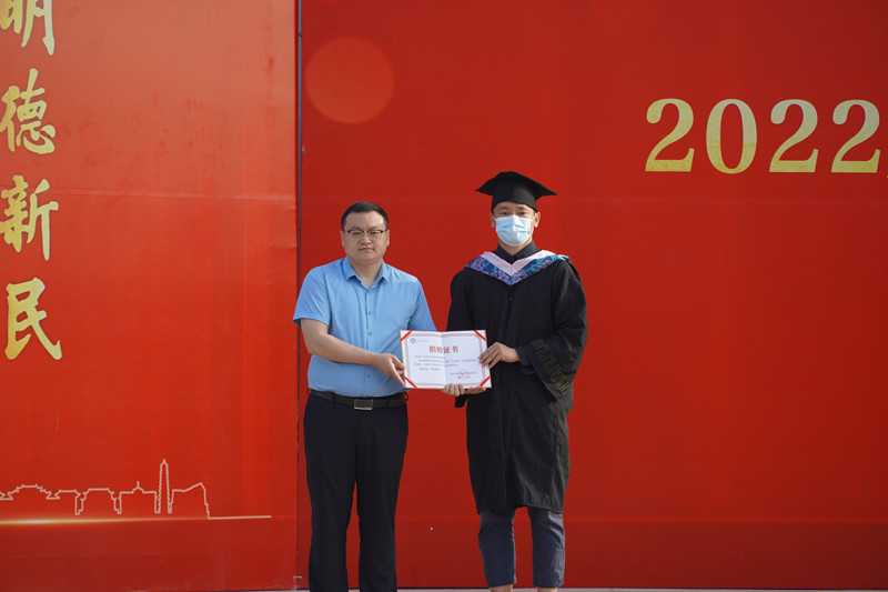 学院副院长刘嘉尧宣读了《世俱杯官方网站关于授予普通本科毕业生学士学位的决定》。学院领导班子成员为毕业生援正流苏、颁发学位证书,并合影留念。一次次有力的握手、一份份暖心的叮嘱,汇聚浓浓学院情。随着右前侧的流苏随帽檐移至左侧中部,毕业生们学有所成,也即将展翅高飞。