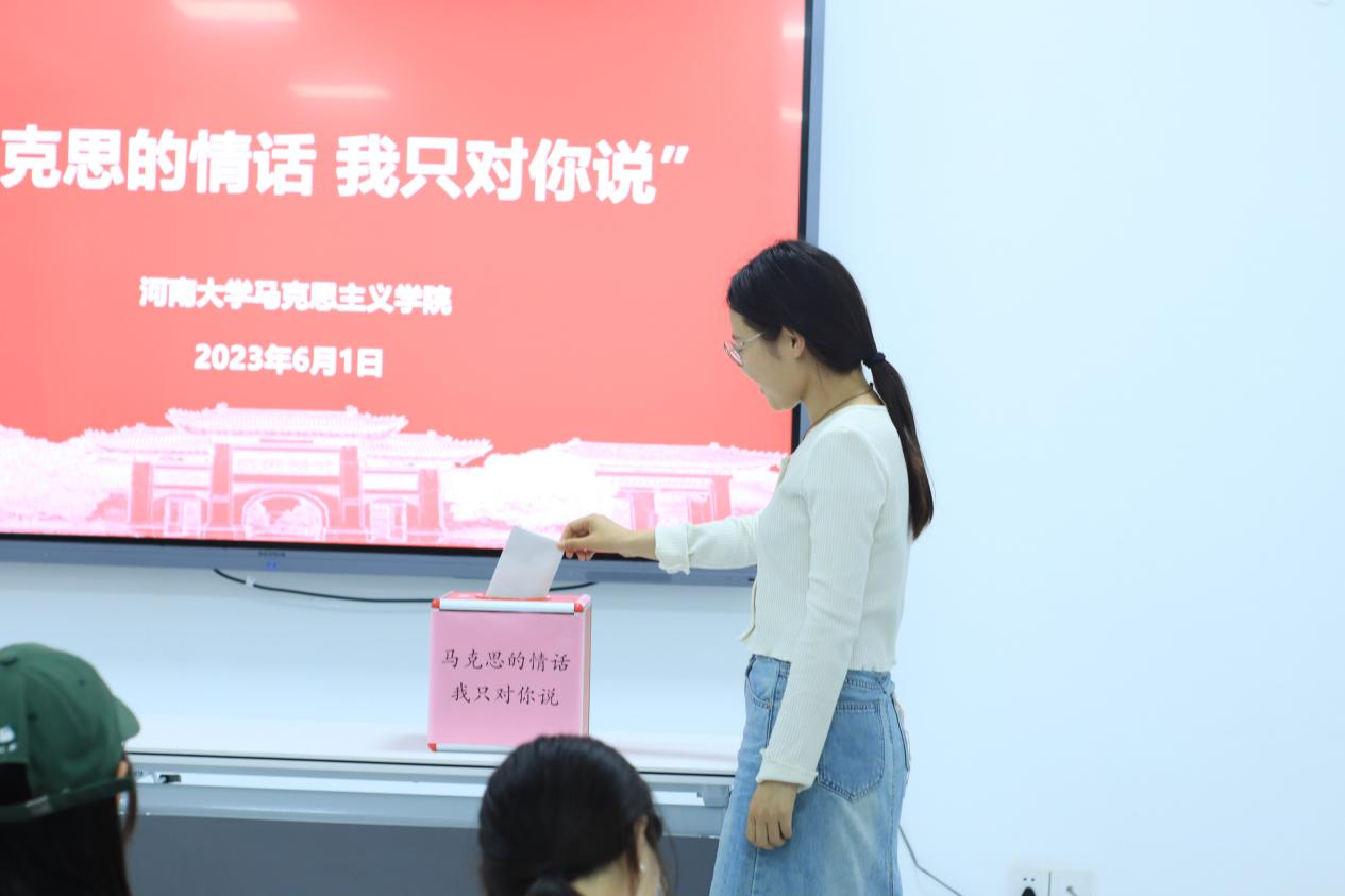 1883年3月14日,“一颗伟大的心脏停止了跳动”。马克思的一生都在追寻真理,有人总结说:“马克思之前的历史,都通向马克思;马克思之后的历史,都是从马克思重新出发的。”在马克思逝世140周年之际,马院研究生以书信为媒介,在信纸上书写着想要对马克思先生所说的话、对马克思主义理论专业的感悟与憧憬以及对马克思主义经典著作的心得与体会,与马克思展开了一场跨越时空的对话。活动现场安静有序,同学们全神贯注,纷纷写下自己的所思、所学、所悟。书写完毕后,同学们依次将信纸投入信箱,以期待明年再次打开,回望自己彼时的感悟,从而更加坚定自己的理想目标。最后,学院研究生会组织参与人员进行合影留念,至此,“马克思的情话我只对你说”活动圆满结束。