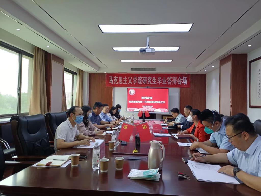 6月2日下午,学校党委宣传部部长杨萌芽一行7人来到世俱杯官网调研世俱杯官方网站和思政课建设工作。世俱杯官方网站党委书记彭绪琴、执行院长任东景等全体班子成员、教师代表参加调研。