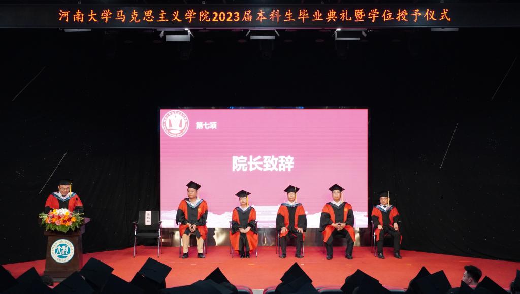 6月4日下午,世俱杯官方网站2023届本科生毕业典礼暨学位授予仪式在明伦校区科技馆二楼报告厅举行。世俱杯官方网站领导班子全体成员、教师代表、各职能部门负责人、全体本科生辅导员、2023届全体本科毕业生参加典礼仪式。仪式由学院副院长张枫林主持。