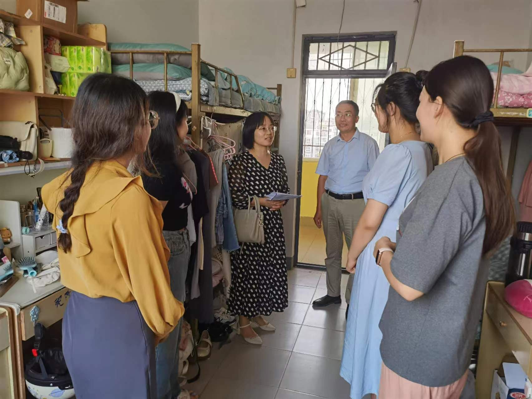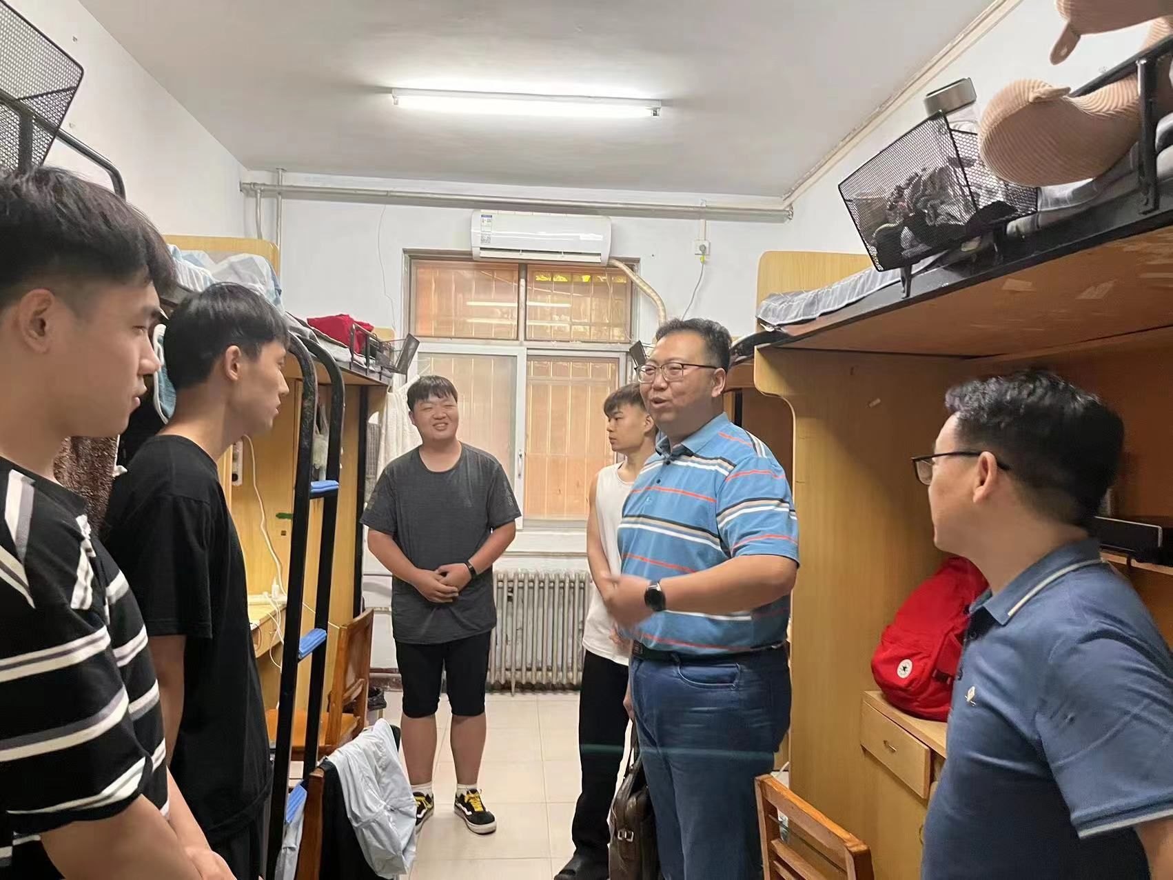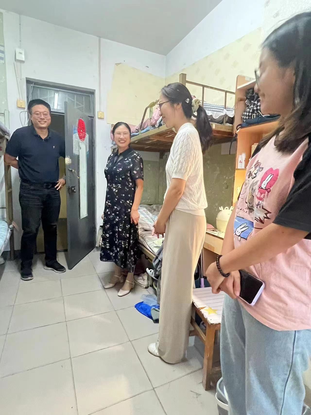 为使2023级研究生新生感受到学院的关怀,增进师生情谊,9月8日下午五点半,学院党委书记彭绪琴、执行院长任东景、副书记郑珊珊、副院长孟骞、刘嘉尧、关海宽等领导班子成员深入2023级研究生宿舍走访看望。走访中,学院领导对研究生新生的到来表示热烈欢迎,并与学生亲切交谈,仔细询问他们的个人基本情况,深入了解学生对到校后的住宿、就餐的适应情况以及对今后读研生活的规划。