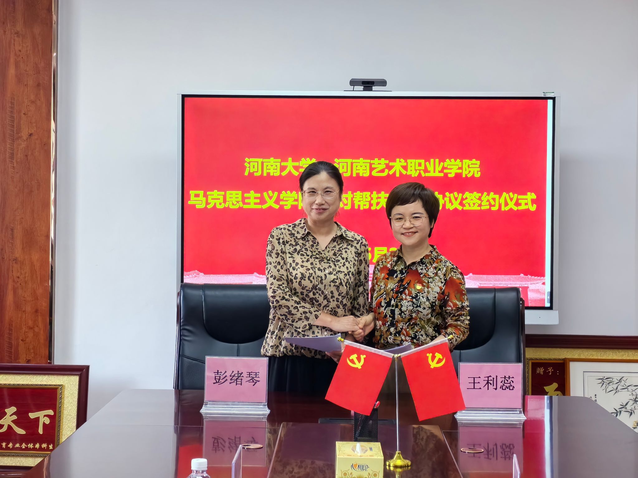 彭绪琴和王利蕊代表双方签订了《世俱杯官方网站 河南艺术职业学院世俱杯官方网站结对帮扶共建协议》。根据协议,双方将围绕教师互派互访、组织集体备课、加强学术交流、开展教学研究、推进资源共享等方面强化合作与交流。