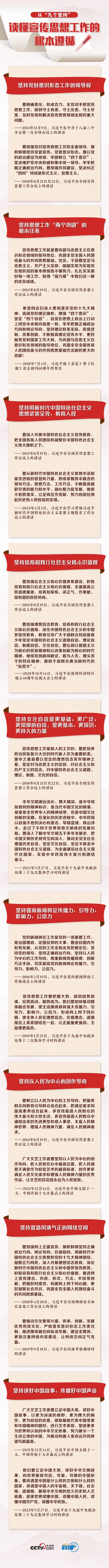 “九个坚持”是做好宣传思想工作的根本遵循,必须长期坚持、不断发展。央视网《联播+》特撷取习近平总书记关于“九个坚持”的重要论述,与您一同学习。